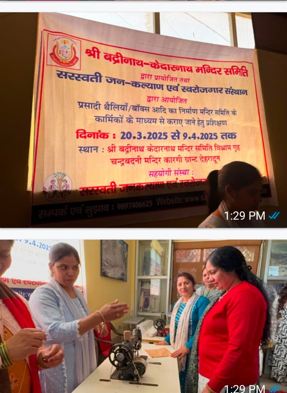 देहरादून 20 मार्च।श्री बदरीनाथ-केदारनाथ मन्दिर समिति ( बीकेटीसी )के तत्वावधान में स्वयंसेवी संस्था सरस्वती जनकल्याण एवं स्वरोजगार संस्थान द्वारा श्री बदरीनाथ – केदारनाथ मंदिर समिति के कर्मचारियों को प्रसाद के बाक्स तथा थैलियां बनाने का प्रशिक्षण आज से मंदिर समिति के चंद्रवदनी मंदिर विश्राम गृह सभागार कारगी चौक देहरादून में शुरू हो गया है। बीकेटीसी मुख्य कार्याधिकारी विजय प्रसाद थपलियाल तथा सरस्वती स्वरोजगार संस्थान अध्यक्ष ने प्रशिक्षण का शुभारंभ किया।